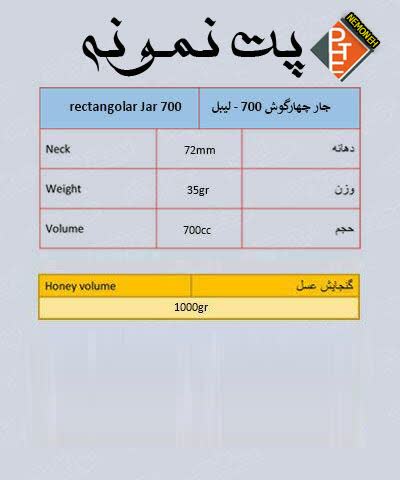 جار چهارگوش ۷۰۰cc دهانه ۷۰